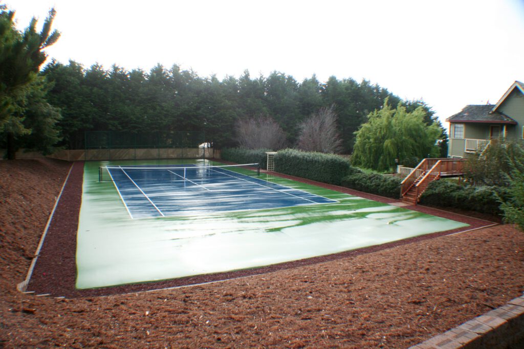 Remodel the existing garage into a master suit. Add a new detached garage and new tennis court.